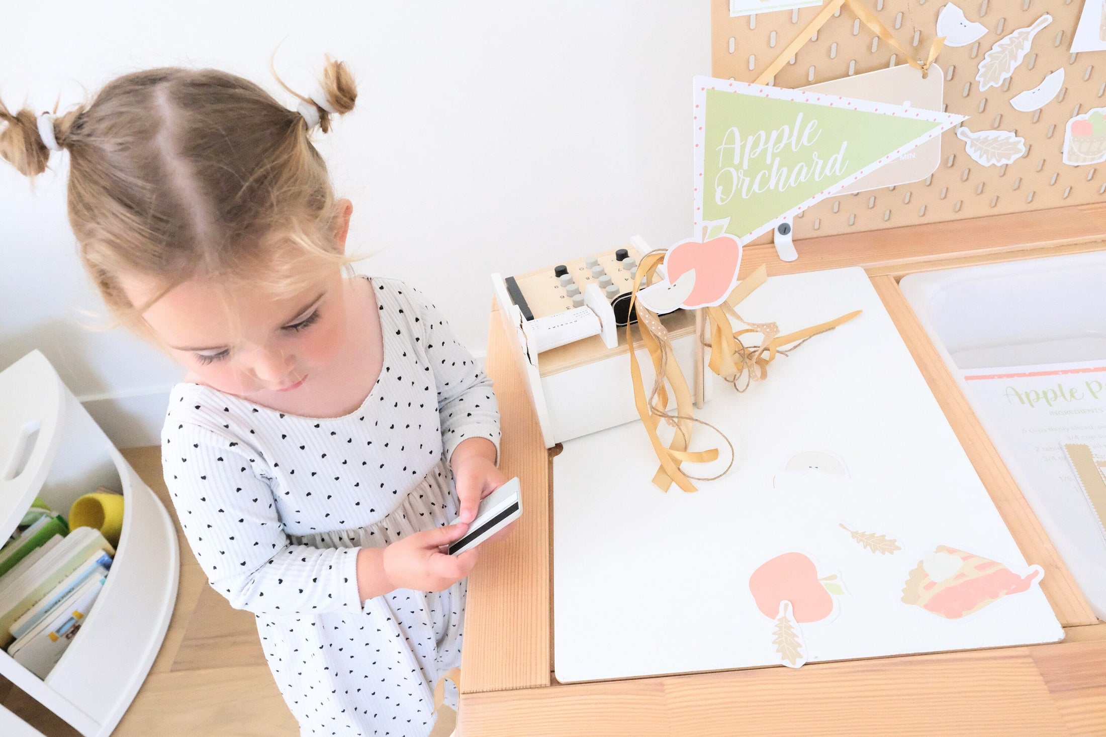 Apple Orchard Printable Files What's included: • 2 Banners •. 1 Set of Cut Outs •. 1 Set of Labels •. 1 Pennant Flag •. 1 Apple Pie Recipe •. 1 Apple Pie DIY •. 1 Apple Seed Counting •. 1 Open/Closed Sign TEACH LIFE SKILLS Pouring & Scooping Counting money Writing Customer service Inventory management Supply and demand Marketing Sprinkling Toppings Object Identification LEARN NEW PHRASES “How much does this cost?” “Here’s your change.” “Would you like more?” “Keep the change.” “Have a nice day!” “Thanks for stopping by.” “How are you today?” Prints are 8.5x11 in PDF format Print at home or at your local Fedex Kinkos