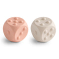 Combine learning and play with the mushie Dice Press Toy. Made with 100% food grade silicone, the pair of dice features poppable dots on each face, encouraging fine motor skill development while also providing a tool for teaching counting and simple arithmetic. A sensory toy and STEM toy all in one, this set of two was developed to keep little hands and minds busy.