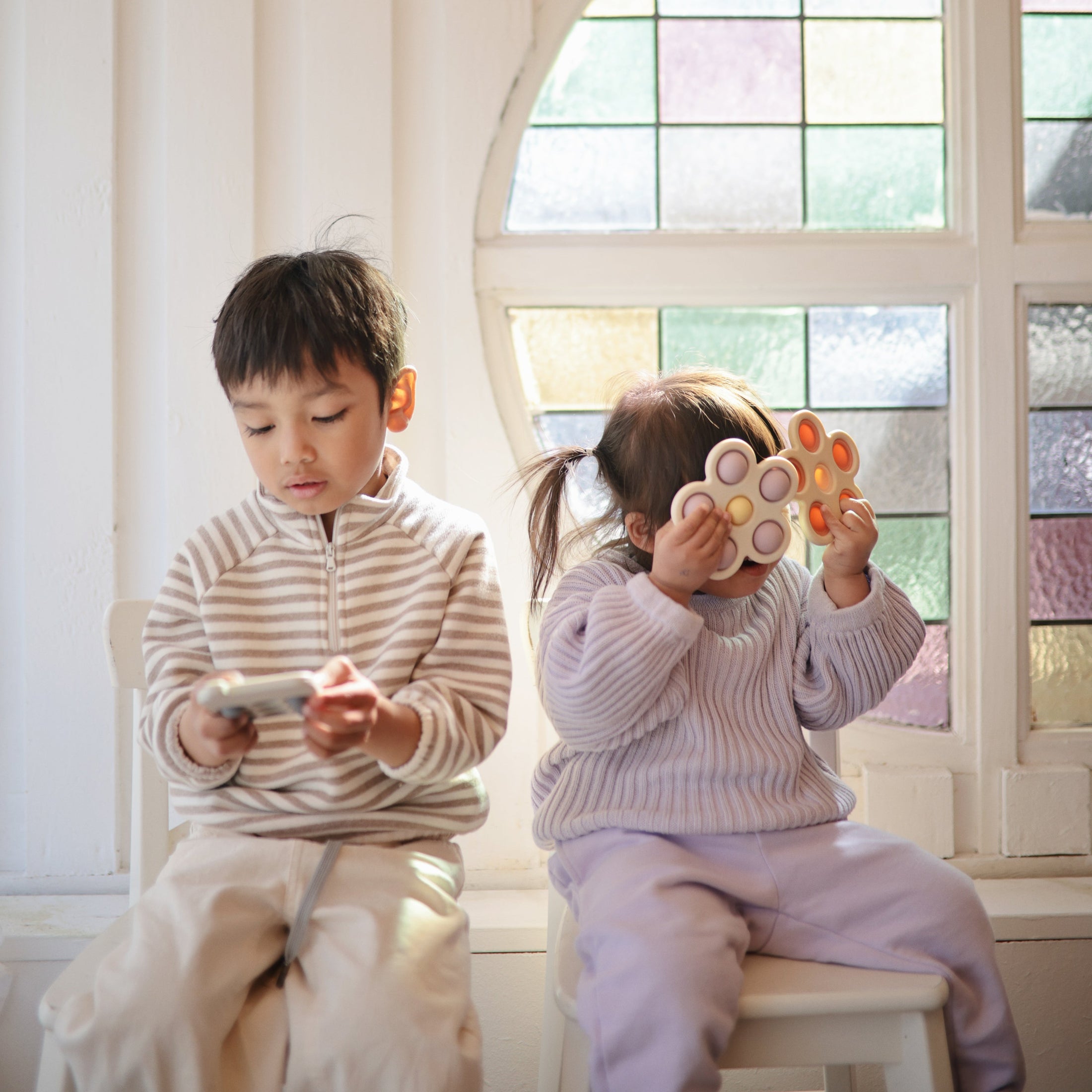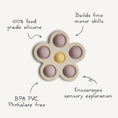 Made with little hands in mind, our flower press toy encourages sensory exploration and the development of fine motor skills with its simple design and soft colors. Featuring food grade silicone and a BPA-free plastic frame, children will tap into learning as they press the bubbles and hear a gentle pop.