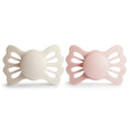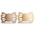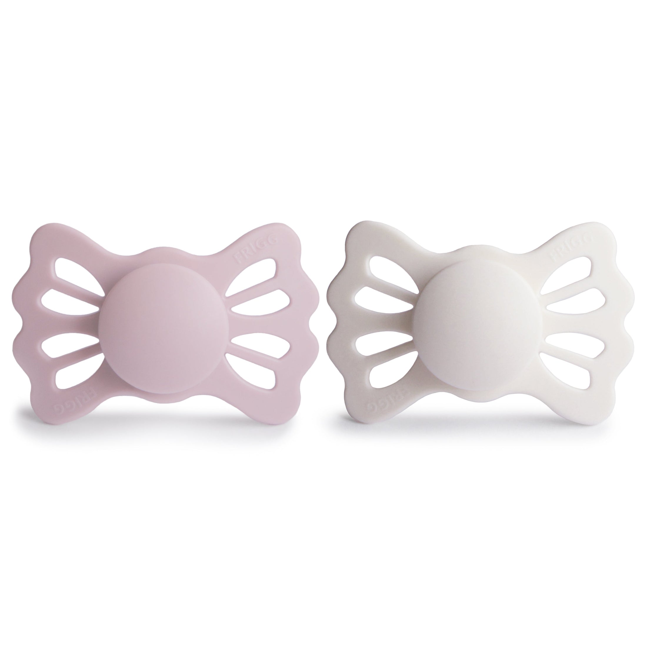 FRIGG Lucky is symmetrical with a slightly flattened teardrop-shaped nipple. The symmetrical design always fits correctly in baby’s mouth, regardless if it is facing up or down. FRIGG Lucky pacifiers have a flatter neck to minimize pressure on the palate and gums, which reduces the risk of crooked teeth and supports proper development of baby’s mouth and jaw.