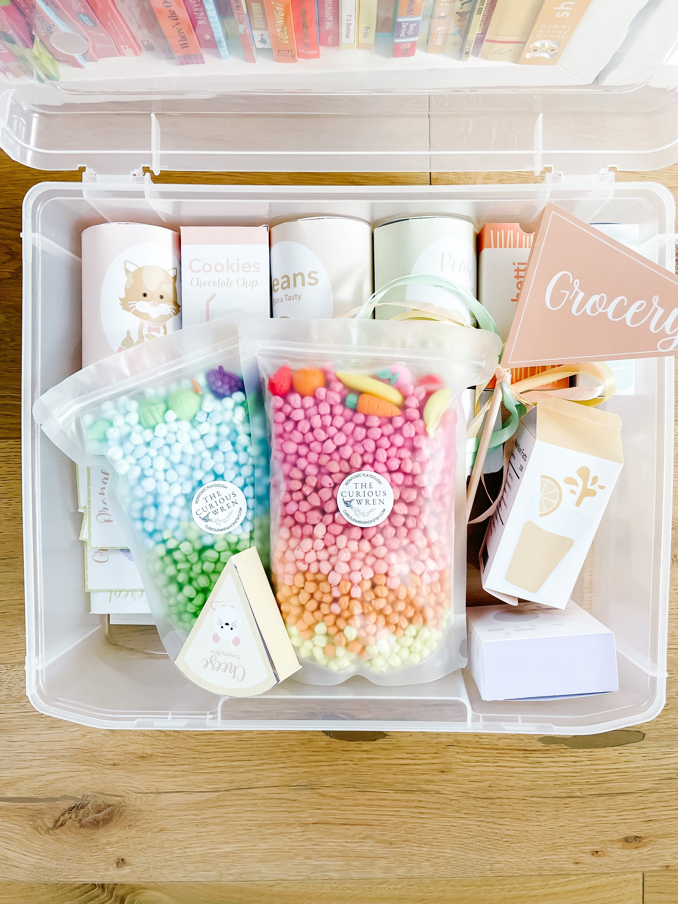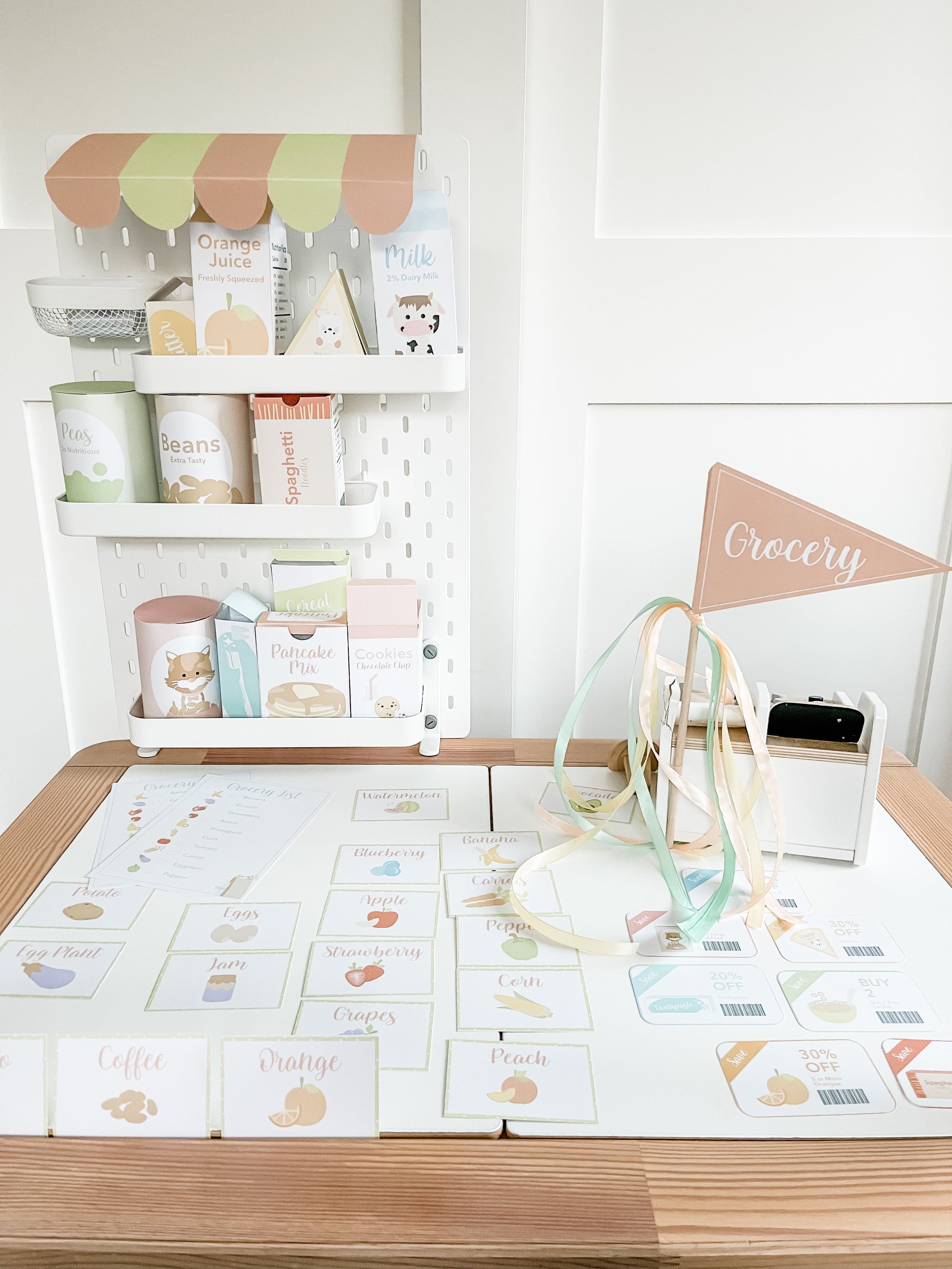 This kit includes 20 printable PDF pages full of grocery store play food items.