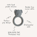 Help soothe your baby's irritated gums with our line of teethers. Made from 100% non-toxic, food-grade silicone, and designed to be easy to grasp by tiny fingers, our teethers are safe for your baby to use. Their playful design and sophisticated colors make them a stylish addition to your home.